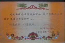 实验室条件建设 实验室现有基础力学实验室:100 m2(5个);专业实验室:100 m2(4个),疲劳试验机室50 m2,大型结构实验室1个1700 m2,已划分不同功能区域,另有专业实习场地1100 m2。目前共有设备1110套,设备总值1644.7万元,其中大型设备有:INSTRON电子万能试验机、拉扭组合试验机、三维扫描仪、动态热机械分析仪、振动测试模态分析系统、3D打印机等。